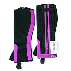 Amidale HALF CHAPS HORSE RIDING EQUESTRIAN BLACK AMARA MACHINE WASHABLE PURPLE DESIGN MEDIUM BNWT
