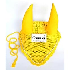 Amidale FLY VEIL HORSE EAR NET CROCHET WITH PIPING YELLOW FULL, COB, PONY (PONY)