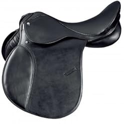 GENERAL PURPOSE SYNTHETIC HALFLINGER SADDLE WIDE FIT BLACK/TAN COLOR SIZE 17″
