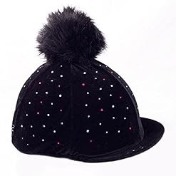 Black Diamante Velvet Riding Hat Cover with fake fur pom pom