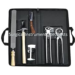 SURGICAL INSTRUMENT SPECIALISTS Hoof Farrier Kit Premium Quality Hoof Kit with Zip Up wallet Black Steel Shoe Puller and…