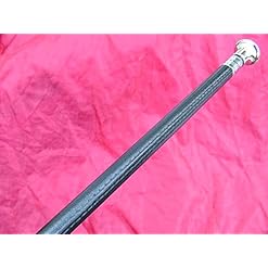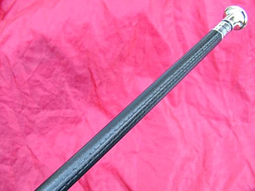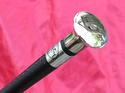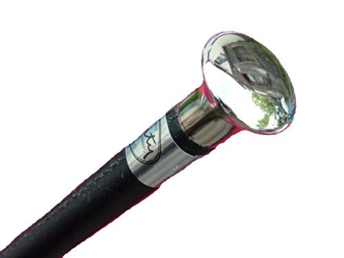 Fusions 24” Black Leather Bound Silver Top Hat Show Cane Made in England. Fibreglass Centre, Metal Cap and Tip.