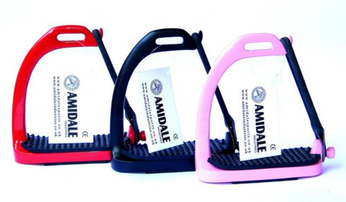 Brand new peacock stirrups in three beautiful colors from amidale sportsavailable in red,black and pinkelastic rubber release can be stretched straight or twisted for a tighter fitquality stainless steel for durabilityrust freesizes available: 4.50 inches and 4.75 inchesrelease the foot during a fall to prevent injury