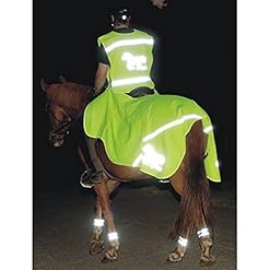 A flourescent yellow lightweight continental exercise sheet to fit ponies that wear 5’3-5’6 rugs. The exercise sheet features: – reflective stripes – cut away saddle area – velcro fastening in saddle area – tail strap – reflects in the dark – 100% polyester – machine washable at 30 degrees – suitable for dryer 100cm from tail to wither