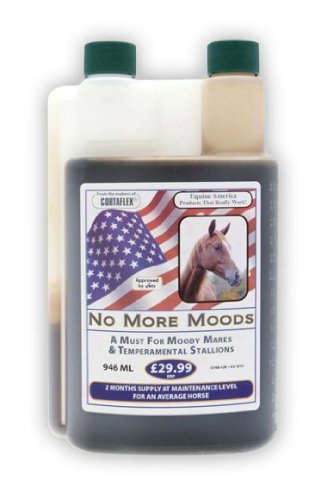 Hormone imbalances in mares can lead to stroppy, unwilling behaviour, sometimes making a horse difficult to handle and resulting in a reduction in performance. Equine America No More Moods Solution contains liquid Chasteberry, a plant which has been recognized for many years for its benefits in supporting correct hormone levels. Use Equine America No More Moods Solution daily to turn your nightmare into a nice mare. Equine America No More Moods Solution has also been used successfully on aggressive stallions. When used in combination with Equine America Lamigard Pellets, Equine America No More Moods Solution can be beneficial to the older horse with a thick coat. When should you feed Equine America No More Moods Solution? *To any mare showing signs of mood swings, aggression or general moody mare behaviour. *To stallions to reduce aggression. *To reduce the symptoms of Cushings disease associated with the imbalance of hormones. How does it work? Equine America No More Moods Solution is a liquid Chasteberry supplement, a plant which has been used to treat hormone imbalances in both people and animals for many years. Equine America No More Moods Solution differs from other Chasteberry products as it is extracted from the whole plant for a more concentrated formulation Ingredients Water, Chaste Berry (vitex agnus-castus extract), Thiamine HCl, Magnesium, Xanthan Gum, Dextrose. Preserved with Ammonium Propionate. Feeding Guidelines For an average 500kg horse, feed 30ml daily for 5 days, or until desired effect, then maintain with 15ml daily. Available in: *946ml (2 month supply at maintenance).