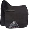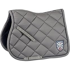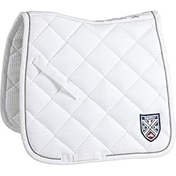 Absorbing and breathable competition saddle pad with diamond topstitching, enhanced with a braid and an Equestrian League badge patch on mounting side