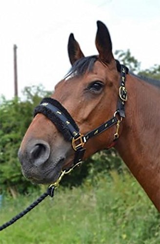 Gallop Fully Adjustable Fluffy Headcollar with Mink Fur, Pony Size, Black