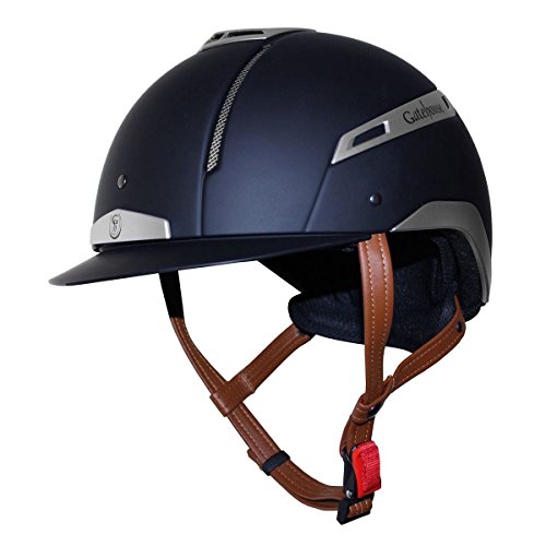 This stunning Italian designed fibre glass helmet is the latest addition to the Gatehouse Range. It conforms to PAS 015 2011, VG1 01.040 2014-12, ASTM F 1163-13, ensuring you meet all current competition requirements. The Volaré also carries the BSI Kitemark to PAS 015. It features 9 points of external ventilation, a four point harness and removable and washable internal padding. Available in Navy/Silver & Black/Silver.
