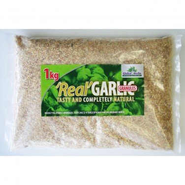 Global Herbs Garlic Granules are helpful for flies, breathing, skin condition and parasite control. Garlic Granules from Global Herbs is great value for money and gives your horses a great treat every day you feed it. *Garlic Granules *Helpful for deterring flies *Good for breathing, skin condition & parasite control *Great value for money *Enjoyed by horses Ingredients: Garlic