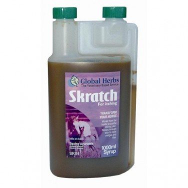Global Herbs Skratch Syrup is perhaps the most effective supplement traditionally used to help with tail, mane and itching skin in the spring and summer season. Global Herbs Skratch Syrup is a gentle & soothing formula is ideally used as an introduction to the range of scratch products. The formula is still relatively effective but for more serious cases SkratchPlus or SuperSkratch should be used. Skratch syrup is best used throughout the spring & summer& is ideal for horses that need a gentle yet soothing product that also provides general support. Ingredients: Turmeric, Cedar tree & Long pepper