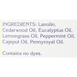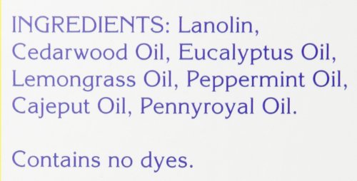 Ingredients: cedarwood, eucalyptus, cajeput, lemongrass, pennyroyal, peppermint oils and lanolin.