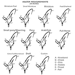 Available in 11 sizes (listed smallest to largest): 01. miniature foal, 02. small miniature, 03. miniature, 04. foal/shetland, 05. small pony/weanling, 06. pony, 07. cob/Arab, 08. full horse, 09. extra full/warmblood, 10. draft, 11. custom