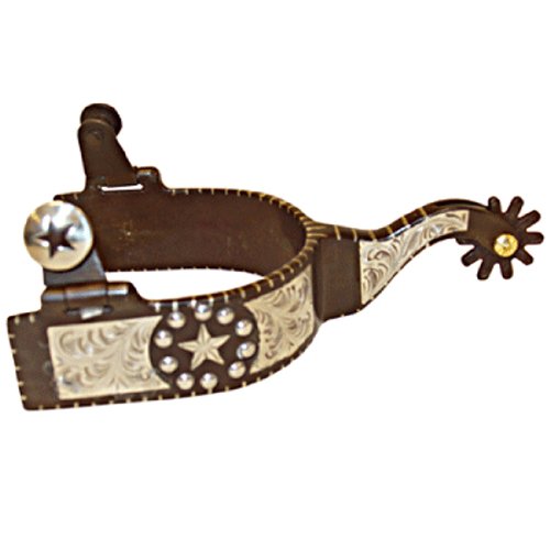 Robart Fancy Engraved Spur Silver Inlay Texas Star Design with Fancy Engraving and Dots.