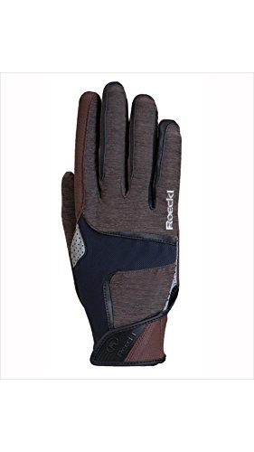 Proven ROECK-Grip ® quality meets stylish melange appearance. The Mendon catches not only with an excellent fit and high functionality on the reins, it is also a real eye-catcher. In the elaborate craftsmanship techniques and the innovative material mix is the entire glove maker Art from ROECKL sports: on the back of the glove the elastic, breathable and moisture absorbing Melange Lycra provides a comfortable climate. Micro mesh and perforated reflective inserts highlight the airy light character. The exclusive ROECK-Grip ® offers maximum grip and enables sensitive reins comfort Pen A harmonious communication between horse and rider. Practical: the strip on the back it will attract Width of the palm to the top to ensure a perfect fit at the wrist. Thanks to the function touchscreen compatible, you can use your smartphone or tablet easily possible.