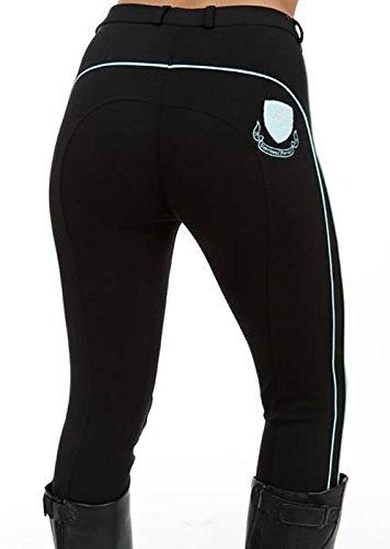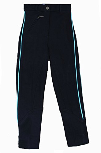 The Sherwood Kids Ekka Jodhpurs are available in Black/Light Blue. Designed with re-inforced knee panels and belt hoops these jods also have a front zip pocket and a zip and hook fastening. Made from 95% cotton and 5% nylon.