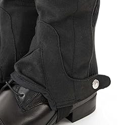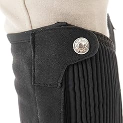 Made from washable amara suede with elasticated calf sections for a snug fit, extra protective pads on inner legs and press stud closures at the top and bottom of the chaps.