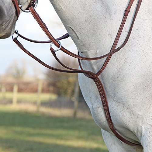 Eco-friendly, vegetable tanned leather and distinctive stitching detail enhances this attractive running martingale with raised and padded neck strap. Stainless steel fittings.