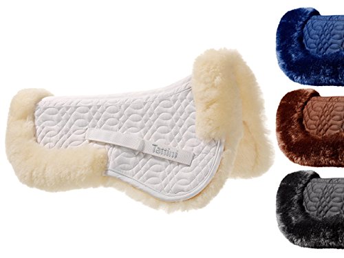 Pure Australian Lambskin with cotton lining, extremely soft and comfortable, breathable, non-chafing and hypoallergenic. Comes with an inerior foam padded chamber that guarantees comfort both for the horse and the rider.