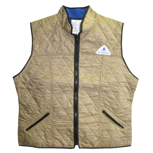 Women’s Climate Control Vest Evaporative Cooling (HyperKewl) – this simple and effective technology works by combining water with our HyperKewl Fabric to create garments that gradually release water through evaporation to keep you cool, but comfortable. Design especially for the Ladies, the Hyperkewl Evaporative Deluxe Sport vest features a high mandarin collar for additional cooling relief and sun protection. The handy front pockets with zipper closure are great for the Equestrians and bikers. Per soaking you will receive from 5 to 10 hours of cooling relief. The sport vest is a lightweight quilted Nylon with a polymer embedded fabric inner. Inside is a water repellent nylon liner.