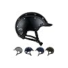 The Uvex SUXXEED VELOURS riding helmet, from the successful dressage helmet range, looks just as elegant as the classic, top hat shape, but offers real comfortable protection. Safety awareness is high in this discipline, riders want protection in training and in competition. This riding helmet has an excellent ventilation. The new R-FAS (Ring Fast Adapting System) guarantees even more stability with its steel ring on the webbing strap. This riding helmet is covered with high quality faux suede. Standard: VG1 01.040 2014-12. Weight from 480g. Color: black velours. Sizes: xs-s (54-55 cm), s (55-56cm), m-l (57-59 cm). Text by CALEVO.