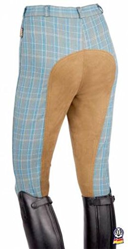 WALDHAUSEN Full Seat Breeches lifestyle check design here. Good fit, durable cotton fabric, with Awatex seat use.Designed with a zipped pocket and light hip cut.Material: 94% Cotton, 6% Elastane