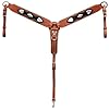 Vintage with a touch of sparkle;Copper metallic turquoise leather overlay;Accented with antique copper flower conchos, Swarovski crystals, etched copper spots;Denim inspired wide white stitching;Made by Weaver