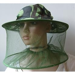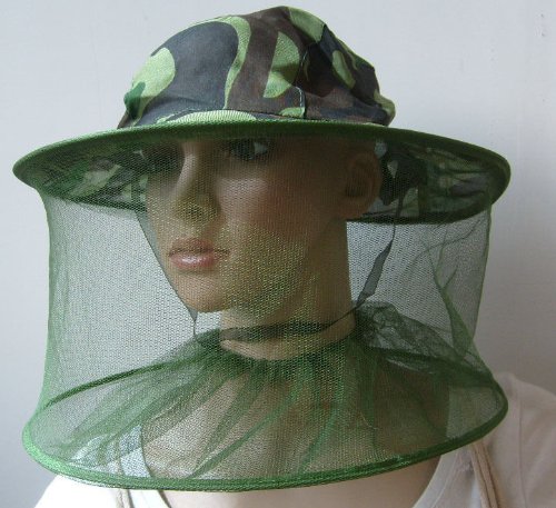 Camouflage design fishing hat with wide mesh hood for anti mosquito.