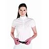 Ladies competition shirt with 3/4 zip front, shaped side panels and short sleeves. Loops on collar to attach detachable overcollar supplied or for a stock tie. Cotton front panel and collar. Durable stretch microfibre body fabric helping to wick away moisture, quick drying and colour fast. 88% polyester, 12% spandex. Machine Washable.