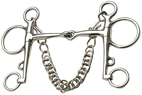 Stainless Steel. Single jointed mouth pelham bit complete with double link curb chain.