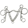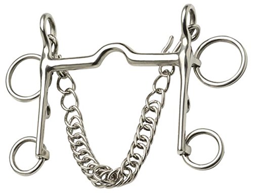 Stainless steel. Ideal for the show hack that dislikes two mouth pieces. This model has the same action as a ported pelham bit, but with the look of a bit and bradoon due to the shank design. It comes complete with a double link curb chain.