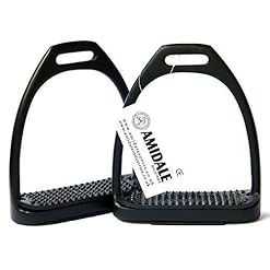AMIDALE SPORTS ALUMINUM LIGHT WEIGHT STIRRUPS HORSE RIDING WITH TREADS 4.75″ BLACK